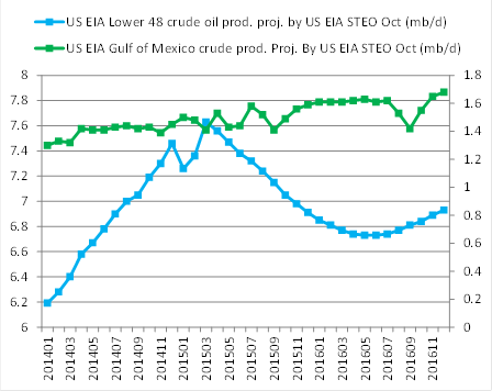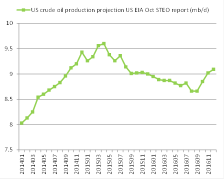 Note however that due to an expected increase in US GOM production the EIA expects US crude oil production to end the year at 9.0 mb/d.