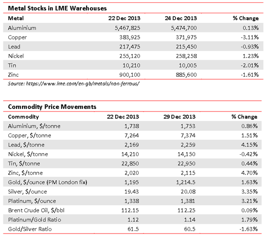 David Hargreaves on Exchange Traded Metals and Minerals, week 52 2013