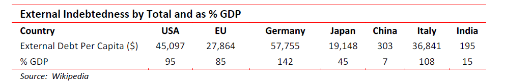 The ratio of gold holdings to GDP is only one measure. Perhaps, in terms of currency value, external indebtedness is an equally relevant marker.
