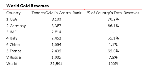 Gold reserves. Whenever we think of another currency overtaking the US dollar we think of central bank gold reserves. Only two commodities matter when you value a currency. One is the capability of its host country to perform and the other is what tangibles it holds. The latter comes in two forms: foreign currencies and gold. The gold fraction is measured as a % of total reserves and the comparison takes some by surprise. Thus in February 2014 we had, says the WGC: