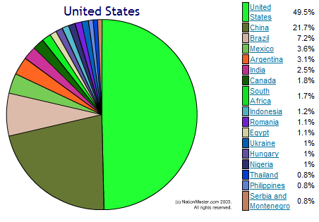 De amerikanska bönderna producerar i dag mer än fem gånger så mycket majs som de gjorde under 1930-talet – på 80 procent av ytan. Detta motsvarar 13 miljoner acres, eller två gånger ytan av den amerikanska staten Massachusetts.
