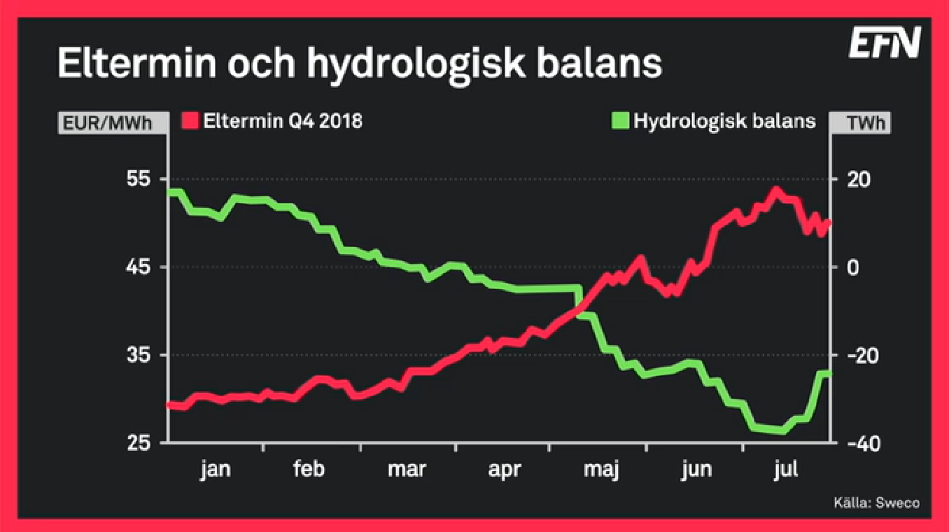 Den fina regnfria sommaren har fått elpriset att skjuta i höjden