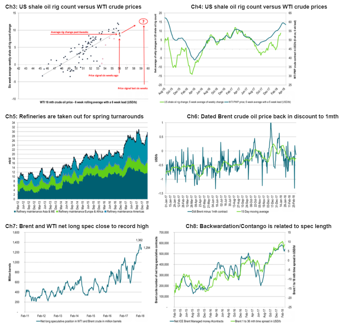 At the moment we have rising inventories in the weekly data, rising US shale oil rig count, rising US shale oil production, increasing refinery outage for maintenance, weakening dated Brent crude oil spot price versus first month contract, a stronger USD and an ongoing sell-off in the S&P 500 index. All in a setting of a close to record net long speculative position.