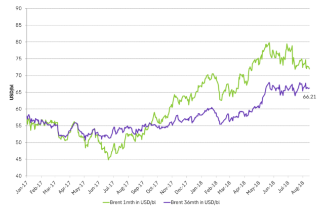 The longer dated Brent crude rolling 36 mth contract has held out well against the sell-off in the front end Brent contract. It still trades at $66/bl and more or less bang in the middle of where it has traded since early May. However, if the EM debt-pain continues to escalate along with dollar gains and US rate hikes then also the longer dated contracts are likely to cave in at some point along with the bearish pressure at the front end of the crude curve.