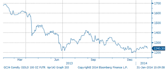 - Feds tapering har inte satt några märkbara avtryck i guldpriset ännu