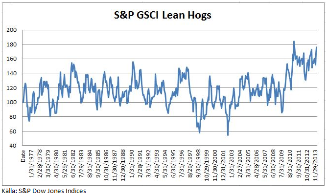 S&P GSCI Lean Hogs ligger just nu strax under sin all time high-notering som noterades i mars 2011.