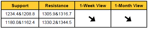 - We will retain our negative outlook while gold remains below the late September high at 1344.55.