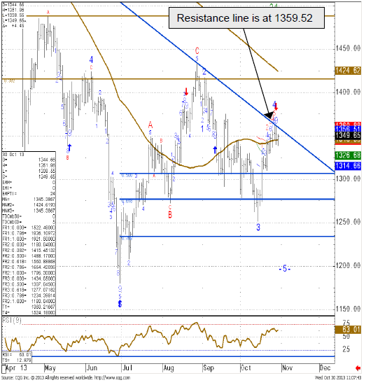 Only the break of the 2013 resistance line at 1360 will confirm that another up leg is made.