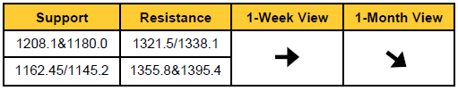 - Around the 1300.00 mark or in the next higher 1321.50/1338.05 resistance zone (April and May lows) it is expected to run out of steam, however, in which case another down leg towards the current July low at 1208.08 and the 1180.04 June low will soon be underway.