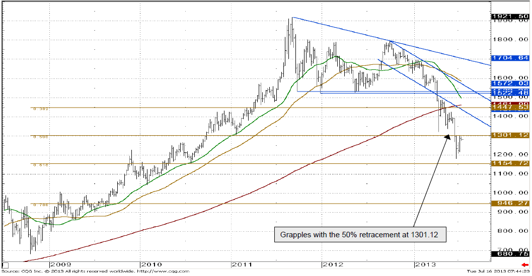 - Failure at 1180.04 will open the way up for the 1162.45/1145.25 significant support zone to be targeted. It contains the January and March 2010 highs, July 2010 low and the 61.8% Fibonacci retracement of the 2008-11 up trend.