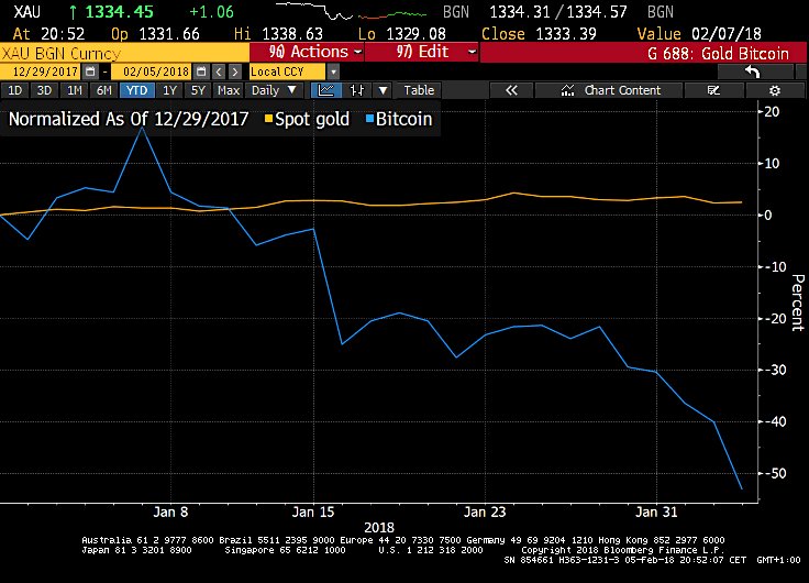 Visa denna graf till den som säger att bitcoin är digitalt guld