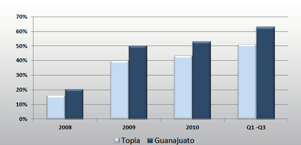 The development of Great Panther over the last few years can best be demonstrated by the following graphics: