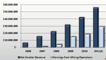this chart shows the continuous growth of the ’net smelter revenue’ and ’earnings from mining operations’: