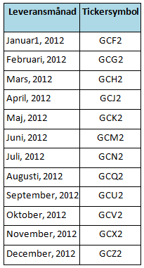 *2 avser årtalet, vilket betyder att tickern GCM2 avser leverans av guld i juni 2012.