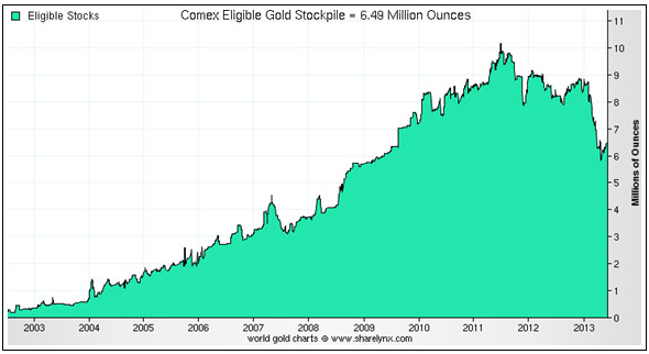 Det första problemet med detta argument är att nedgångarna i lagernivåerna började långt innan guldpriset började falla. Varför fick vi då inte se det stora fallet i guldpriset under 2011 när guldet handlas till 1 900 USD per troy ounce? Varför såg vi inte sådana stora fall i lagernivåerna under 2012 när guldpriset föll med 20 procent? Denna typ av fall i guldlagren har inte förekommit i anslutning till tidigare prisfall så detta argument är svårt att acceptera. Tänk dessutom på att allt guld som säljs har en köpare, det går inte att sälja guld på COMEX eller någon annan börs heller för den delen utan att det finns en köpare.