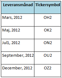 *2 avser årtalet, vilket betyder att tickern OK2 avser leverans av havre i maj 2012.