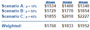 - as to the implications for gold, Murenbeeld paints three different scenarios with weighted average price forecasts as follows: