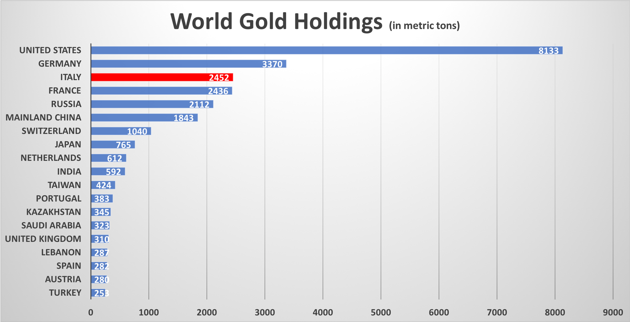 Italien är en av världens största innehavare av guld, hela 2452 ton. Nu säger dock Matteo Salvini, vice premiärminister och inrikesminister, att han överväger att ta kontroll över landets guldreserver från den ännu så länge oberoende centralbanken. Det han vill göra är att sälja guldet för att kunna öka statens utgifter. Det återstår dock att se hur långt regeringen bestående av Lega Nord och Femstjärnerörelsen faktiskt går.