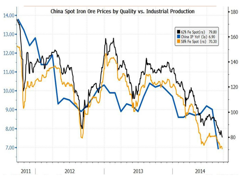 Vi noterar också den kinesiska regeringens ovilja att införa nya stimulansåtgärder. Barclays skrev i sin PMI-rapport att banken förväntar sig att den kinesiska regeringen skall sänka sitt tillväxtmål från 7,5 till 7,0 procent under 2015, något som ligger i linje med det uttalande som Kinas premiärminister Li gjorde i Davos den 9-10 september. Li sade då att Kina skulle gå från mer lättnader till mindre stimulans. Bloomberg chefsekonom Michael McDonough twittrade i anslutning till detta att osäkerheten om den kinesiska regeringens vilja att addera ytterligare stimulansåtgärder driver järnmalmspriserna till lägre nivåer.