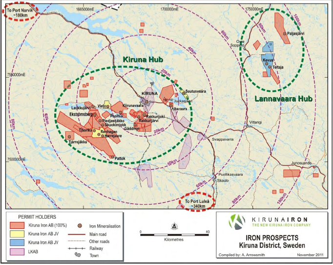 För att dra fördel av dessa undersökningstillstånd har Scandinavian Resources ingått ett joint venture med Boliden och Tasman Metals. Ledningen själv bedömer projekten som mycket intressanta, dels för att projektet har förutsättningar som kan liknas vid dem i Pilbararegionen i västra Australien, en region som sett födelsen av en rad australiensiska gruvföretag, till exempel Fortescue Metals Group (ASX:FMG) och Atlas Iron Ore Ltd (ASX:AGO). Kiruna Iron är vidare det enda järnmalmsbolaget utöver LKAB som har tillgångar inom en radie om 10 mil från Kiruna. LKAB sade vid en presentation hos Carnegie under augusti 2011 att bra fyndigheter var en bristvara och att bolagets produktion riskerade att bli en flaskhals.