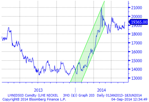Indonesien införde under januari ett exportförbud på nickelmalm som inte förädlats. På så vis försöker man tillgodogöra sig en större del av förädlingsvärdet genom att tvinga gruvbolagen till investeringar i förädlingskapacitet. Indonesien var världens andra största nickelproducent och nickelpriset sköt upp med 55 % från januari till toppen i maj månad.