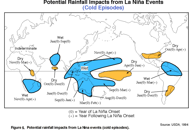 La Niña, den södra hemisfärens motsvarighet till El Niño, påverkar såväl regnskog som reven i hela Stilla Havsregionen. La Niña är den kalla fasen av ENSO (El Nino Southern Oscillation) som följer den varmare El Niño och bidrar med en nedkyling av vattnen i det tropiska Stilla Havet, förstärker passadvindarna (“som” eller “och”) skapar kraftiga vågor utanför Sydamerikas kust vilket gör att kallare vatten flyttar sig västerut.