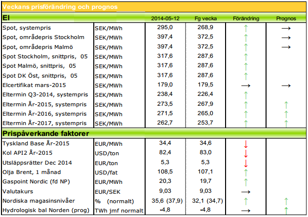 Som en våt filt lägger sig nuvarande väderprognos över marknaden! Senaste tidens aggressivitet har förbytts till panisk flykt. Terminspriserna ned över hela linjen. Väntas nu mycket mer nederbörd än normalt. Kärnkraften blir dock delvis ute längre än planerat i maj.