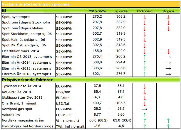 Modity om elpriset vecka 26 2013