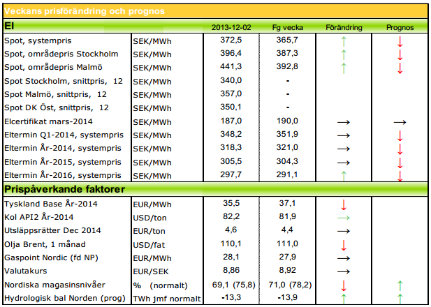 Modity om elpriset vecka 49 2013