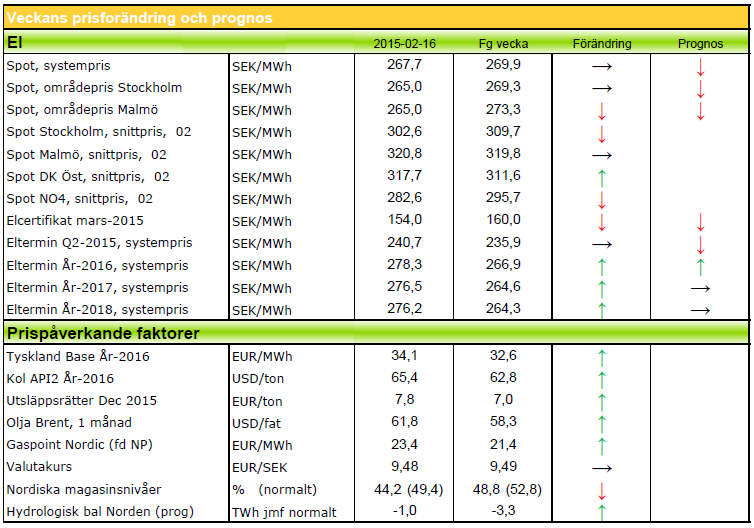 Kol och olja upp och drar med sig de långa elterminerna. Den korta elen är ned på varma, blöta och blåsiga prognoser. Utsläppsrätterna börjar nu stärkas rejält i avvaktan på omröstning. Hydrobalansen är för första gången på länge positiv samt att vi väntar mycket nederbörd den kommande tiodagarsperioden.
