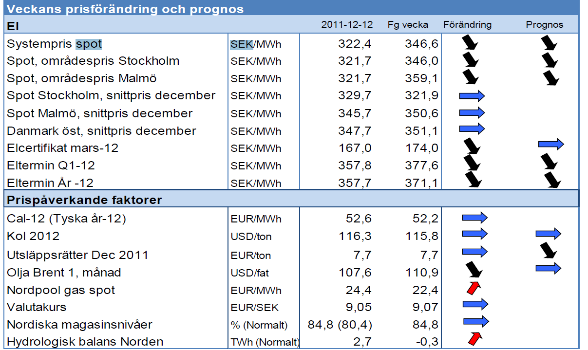 Modity om energimarknaden vecka 50 2011