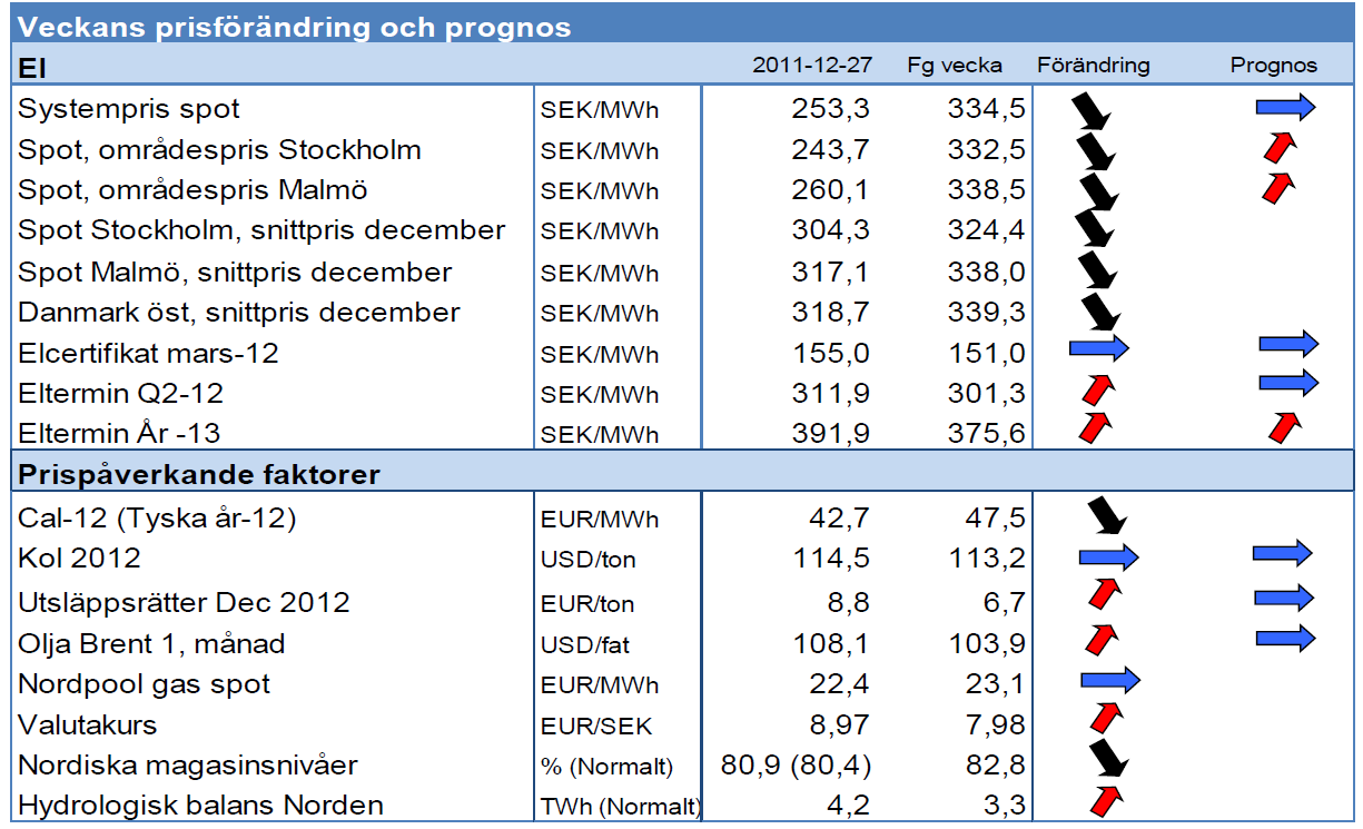 Modity om energimarknaden vecka 52 2011