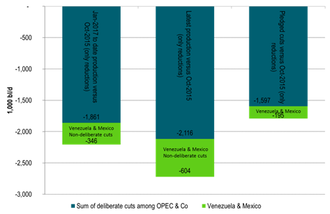Chart 3: Deliberate OPEC & Co production cuts of 2.1 m bl/d