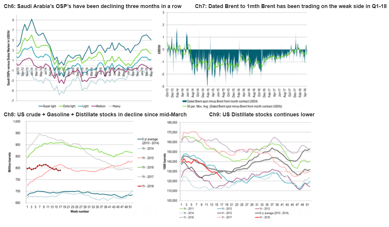 Brent crude traded much of the day yesterday on the weak side as API predicted US crude stocks to rise and president Macron placed a revised Iran nuclear deal proposition on Trumps table. US crude stocks did indeed rise 2.2 m bl last week and Brent traded to an intraday low of $73.17/bl on the back of that. Prices however recovered quickly thereafter as lower refinery utilization was seen as the key reason for the crude inventory rise. The continued 2.6 m bl decline in US distillate stocks which were already below normal also gave the inventory data a more positive flavour. In the end Brent crude closed 0.2% higher on the day at $74/bl thus taking a breather following the intraday high of $75.47/bl from the day before.