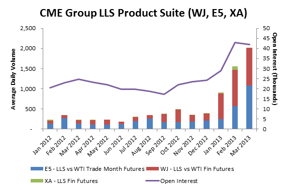 Med ovanstående i åtanke är det inte konstigt att handeln med de LLS-kontrakt (WJ, E5 och XA) som finns på NYMEX, har skjutit i höjden. Historiskt sett har det omsatts mellan 300 och 350 kontrakt per dag, men sedan början av året rapporterar CME Group, som bland annat äger NYMEX och Chicago Mercantile Exchange, att handeln har stigit med mer än 400 procent och nu uppgår till 2 000 kontrakt per dag.