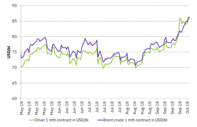 Unless the other Middle East producers offers sufficient medium sour crude on the market in this forward window in order to offset the loss of Iranian supply then Oman, your direction is up and Brent will follow or float higher on top.