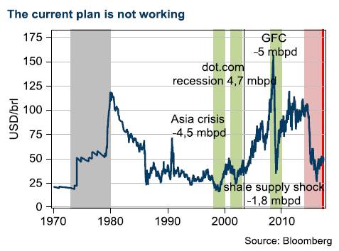 There is nothing we have seen from the group so far which indicates that they will close their eyes, let the world drown in oil and the oil price crash to $40/b or below.