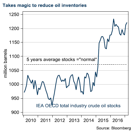 After one year in office and clearly the architect of the existing cutback strategy, Saudi Arabia’s oil minister, Al Falih, is now the protagonist at the OPEC Secretariat. Al Falih is working closely with his Russian counterpart, Novak. They raised market expectations ahead of the meeting through a joint press conference in China. After opening up for a ninemonth extension, other countries had little to do but follow. We believe Al Falih and Novak synchronised information leaks to the media. In addition, they arranged a joint session between OPEC and non- OPEC countries at the official OPEC meeting. To further spread the word of the new alliance, the world’s two mightiest oil men dined together in Vienna the day before the meeting. Naturally, they gave a short speech when ‘spotted’ by the media.