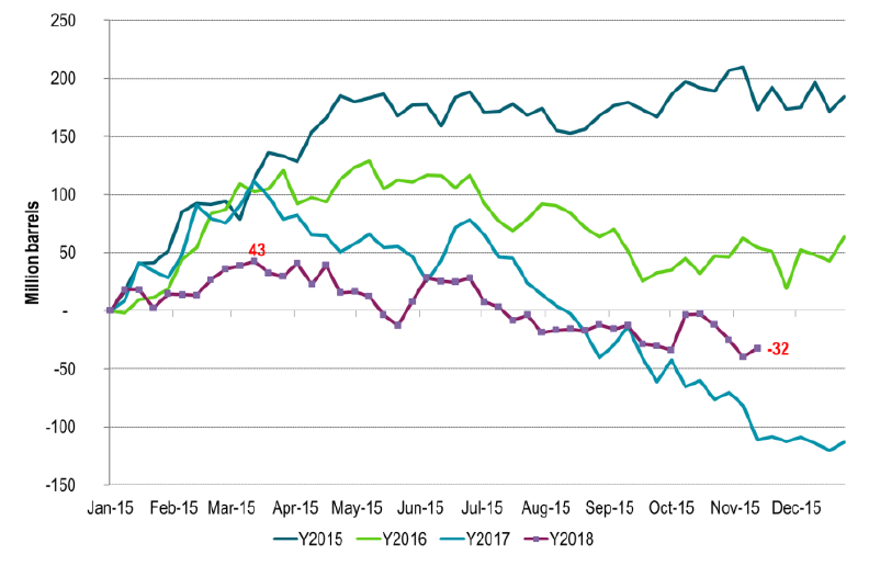 The ministerial meeting between the extended OPEC group this weekend clearly launched discussions about production cuts leading up to the official OPEC meeting on 6 December in Vienna. What they all want is to avoid a consistent surplus and stock building in 2019 developing into a contango crude oil market where the spot price trades at a significant discount to longer dated prices. That would undo all of their efforts through 2017 and 2018 to draw down inventories and drive the crude curve into backwardation.