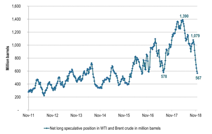 Canada, Alberta’s Premier Rachel Notley decided this weekend to cut Alberta’s oil production by 325 k bl/d from January onwards until local inventories are back down to normal. Alberta is the largest oil producer in Canada and the cut constitutes a reduction of 8.7% in Alberta. After that the production cuts will be reduced to 95 k bl/d until the end of 2019. Together with the agreement between Russia and Saudi Arabia this weekend this adds to the forward fundamental price support picture.