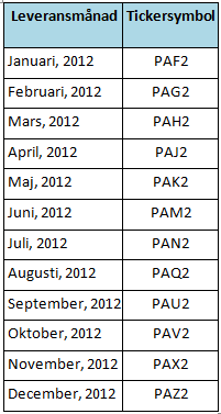 *2 avser årtalet, vilket betyder att tickern PAM2 avser leverans av palladium i juni 2012.