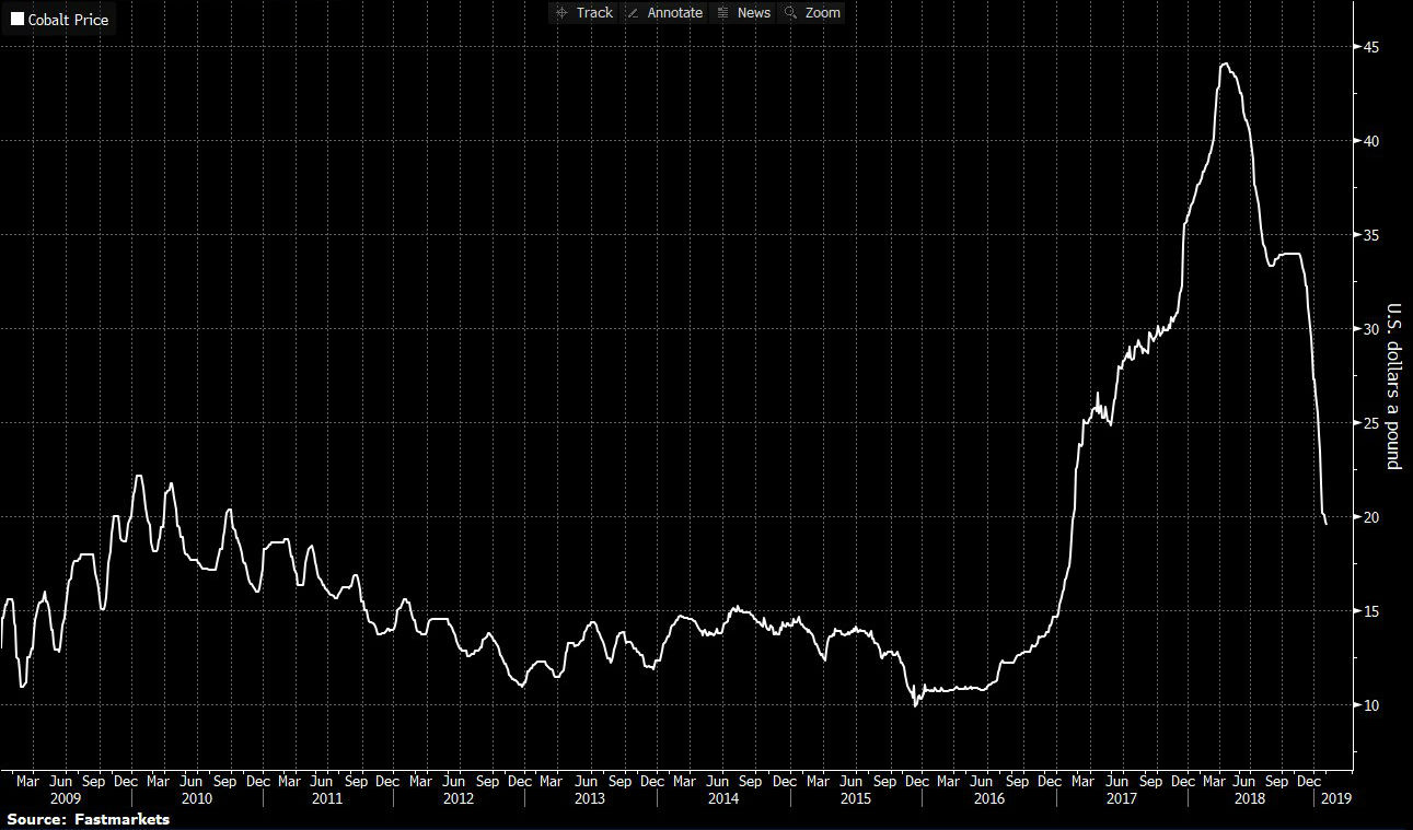 Priset på kobolt faller kraftigt