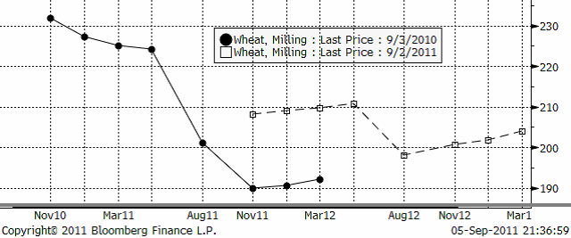 Man kunde man köpa tillbaka samma mängd vete i novemberkontraktet 2011 för 190 euro per ton. Man hade fortfarande kvar samma position, fast man bytt från fysisk spotposition till terminsposition.