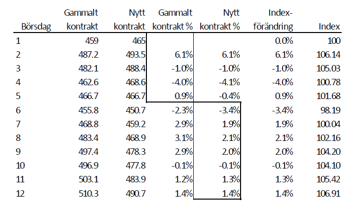 - 1. Vi ser här att den som under dessa 31 år varje år sålt terminskontrakt på vete för att minska sin risk, också tjänat i genomsnitt 8.6% per år.