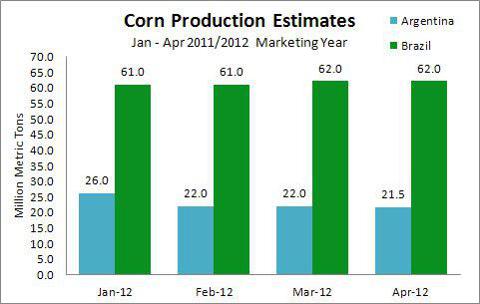 USDAs uppskattningar tenderar att släpa efter med en månad på grund av tidpunkten för undersökningar och utifrån kontakter med argentinska jordbrukare förväntar vi oss ytterligare en minskning i fråga om estimaten för argentinska sojabönor och majs. USDA-rapporterna kommer förmodligen inte att komma kunna rapportera dessa prognossänkningar förrän tidigast i maj 2012. USDAs uppskattningar av majsproduktionen visar på att den kommande skörden är stabil till ökande i Brasilien.