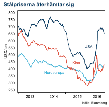 Trots det har saker och ting utvecklats annorlunda detta år. Priserna har stigit både i, och utanför Kina trots att exporttrycket från Kina inte har lättat såsom förhoppningarna var efter höjda tullar i USA och Europa. Istället är det den inhemska marknaden i Kina som förbättrats. Regeringen har stimulerat ekonomin för att dämpa nedgången. I den kampen har man använt sig av en gammal kär medicin, investeringar i infrastruktur. Därmed har prisbilden på stål stärkts och med högre inhemska priser krävs också högre priser på exportmarknaden vilket minskar prispressen från Kinas exportvolymer i USA och Europa.