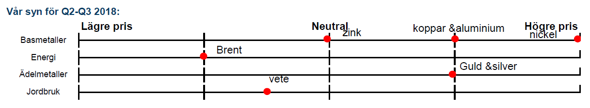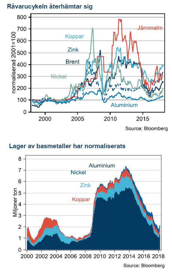 Efter två års prisuppgångar på råvaror, helt i linje med den globala konjunkturens frammarsch med den starkaste, synkroniserade tillväxten på många år, ser nu politiken ut att ta över. Trump inför tullar på stål och aluminium i världens största ekonomi. Xi Jinping har utropats till president för resten av sitt liv i världens största producent och konsument av råvaror. Kronprins Mohammed Bin Salman har utmanövrerat sina motståndare i Riyad och styr OPEC med järnhand. Om konjunkturen drev råvarorna hit har politiken större inflytande framöver.