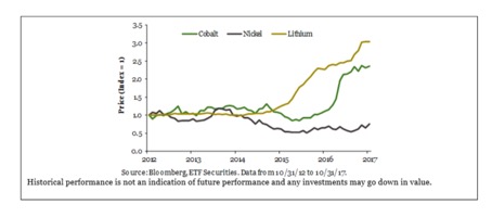 De berörda råvarorna omfattar litium och kobolt, som båda är nödvändiga för batteriproduktion. Kobolt och litium har redan uppvisat stigande priser under 2017.