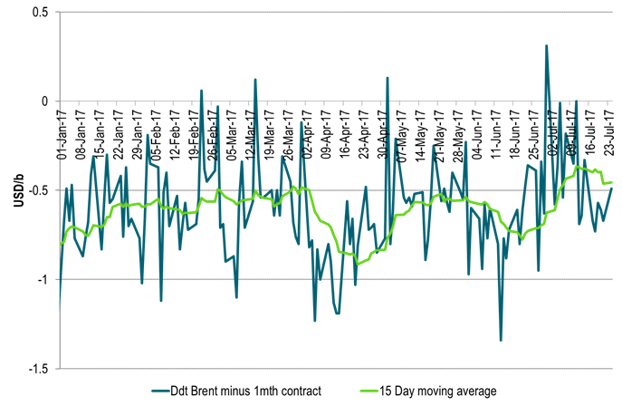 Ch7: Brent dated to 1mth contract spread should tighten during inventory draws in H2-17