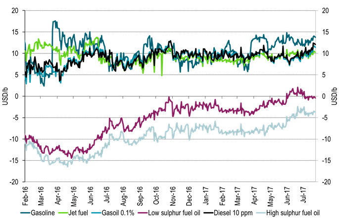 Latest: Saudi Arabia has decided to cut crude oil exports to 6.6 mb/d. Last week Saudi stated that they might cut exports by 1 mb/d. Saudi Arabia exported on average 7.2 mb/d from Jan to May. Thus cutting exports to 6.6 mb/d is a real tightening. This is a pure unilateral action. The rest of OPEC and non-OPEC members did not opt for any further cuts at the meeting (still ongoing) in St Petersburg this weekend and today. As such Saudi Arabia is saying that they want a faster re-balancing, faster inventory declines and also a higher oil price. Oil price shifts up 1% to $48.5/b following the statement. It is opportune for Saudi to do this now. Inventories will draw down in H2-17. Thus Said is playing into a positive trend and strengthening it. Net long speculative position by managed money has room to increase and as such prices have the potential to increase in response to a market re-positioning to an increasing long.